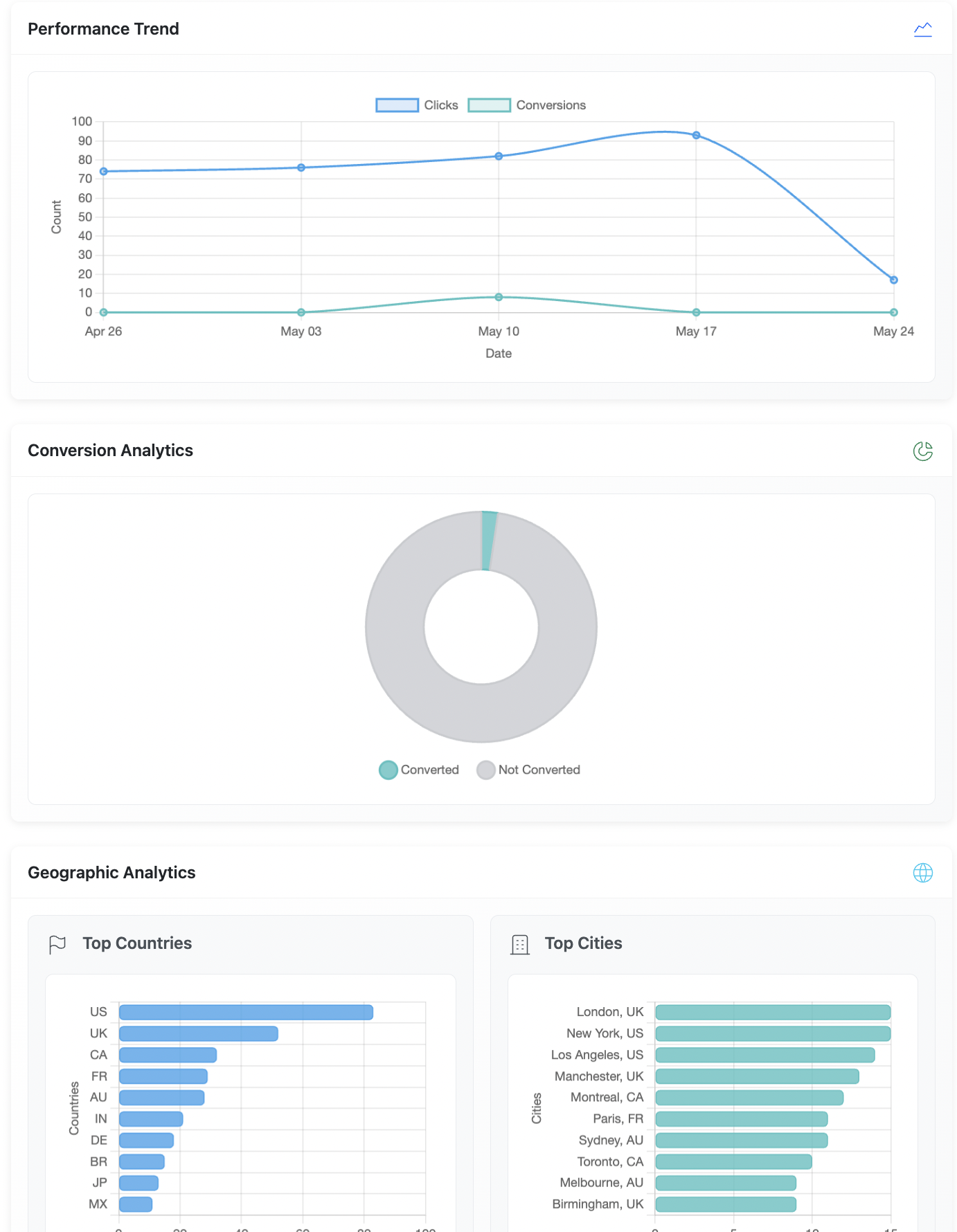 Track clicks, conversions, and earnings in real-time. Monitor performance with detailed analytics.