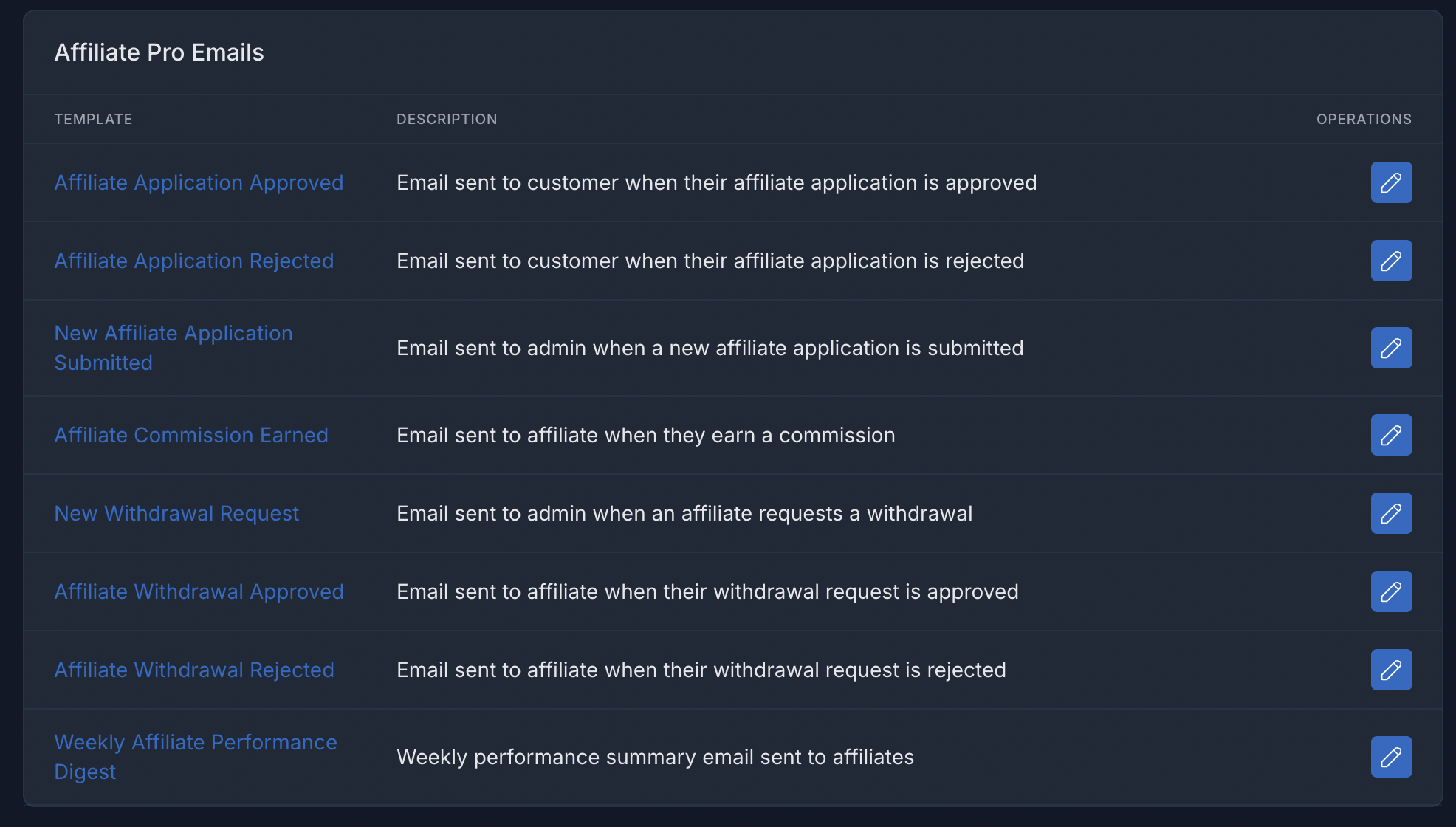Set up automatic payouts when affiliate balance reaches threshold. Multiple payment methods supported.